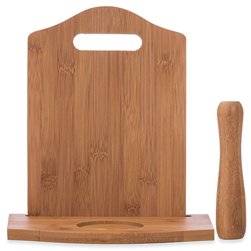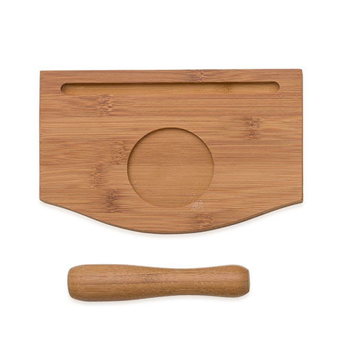 Kit caipirinha 3 peças com: tábua de corte, socador e suporte para copo. Material de madeira, tabúa além de possuir suporte para copo(não acompanha) também possui suporte para a tábua de corte.